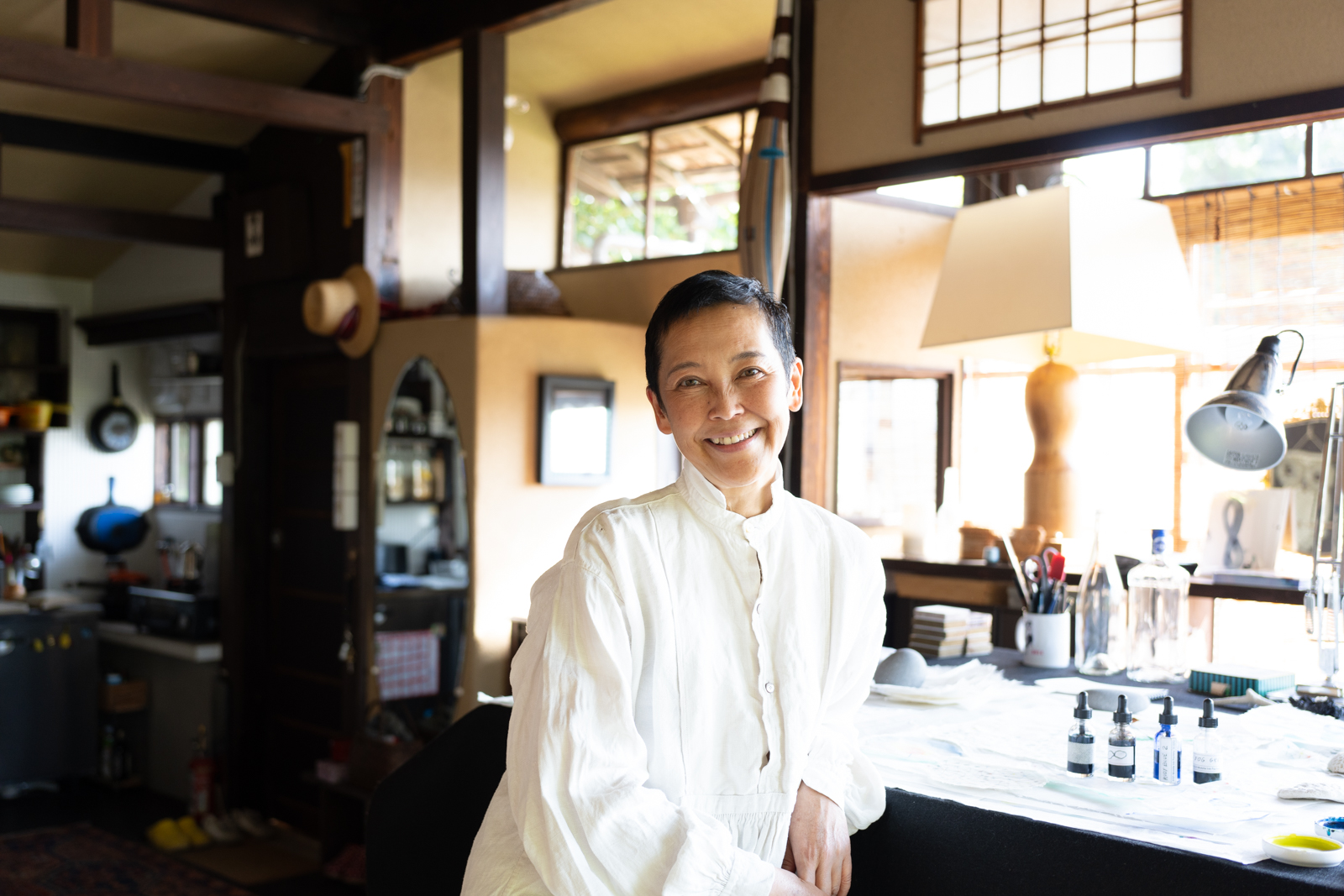 20代までイラストレーターとして活動後1997年米国へ移住。NYとハワイを拠点に世界を旅し、自然の普遍性と精神性に基づく抽象画を発表。現在NY在住、京都「お山のアトリエ」にたまに里帰り。