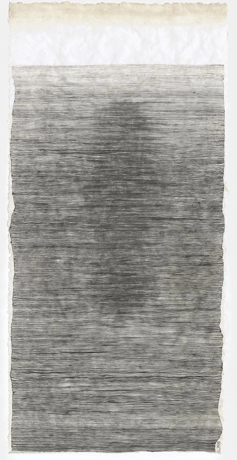 Pigment from prehistoric volcanic dust, handmade ink from Mica, Sumi ink, and Japanese Watercolors on Washi Japanese paper (Kozo Kurotani Gasenshi)