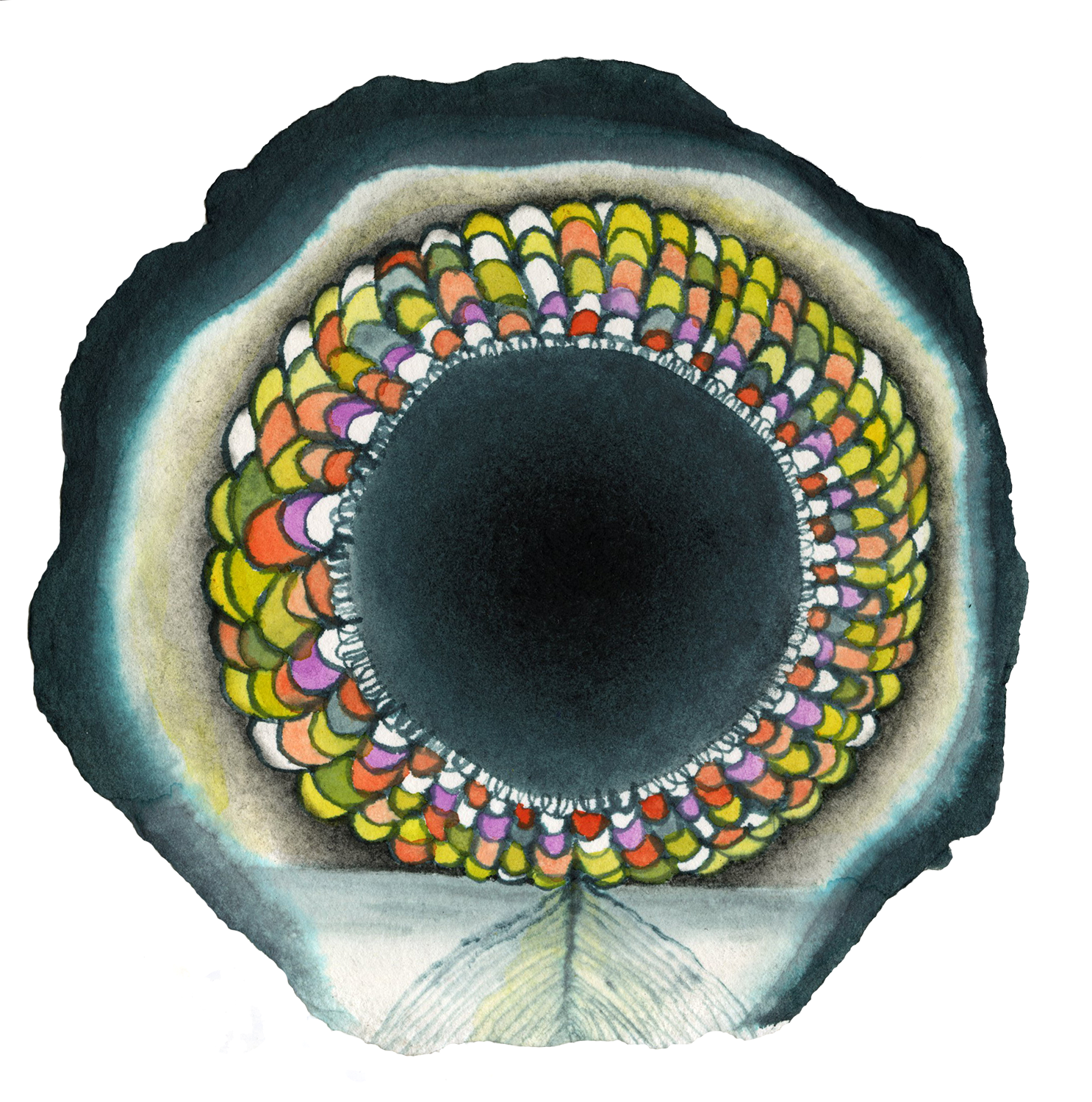 Portal 2023Japanese watercolor and special handmade ink on paper紙に顔彩と特別なインク7 x 7 inches (180x 180 mm ) round ← Love Letters series