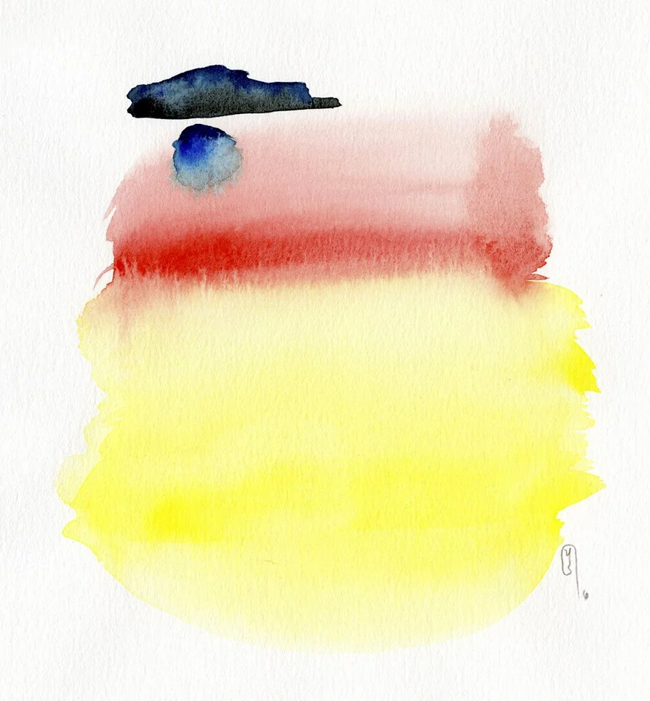 Sunset from Atelier2016Gansai Japanese watercolor on paper 紙に顔彩10 x 9 in. (255 x 230 mm) ← Love Letters series